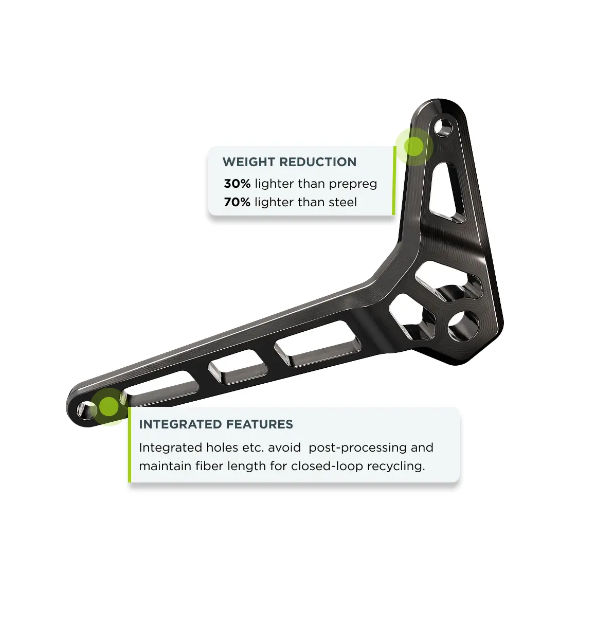 Integrated holes, inserts etc. avoid post-processing and maintain fiber length for closed-loop recycling.